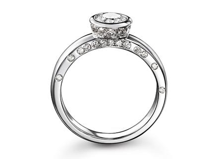 簡約的鉑金配以璀璨的鉆石,再現(xiàn)經(jīng)典的永恒之愛。環(huán)形的嵌座使鉆石獲得更私密永恒的守護(hù),純白無暇的戒圈與戒圈上零星的閃鉆相互輝映,更顯別致優(yōu)雅。