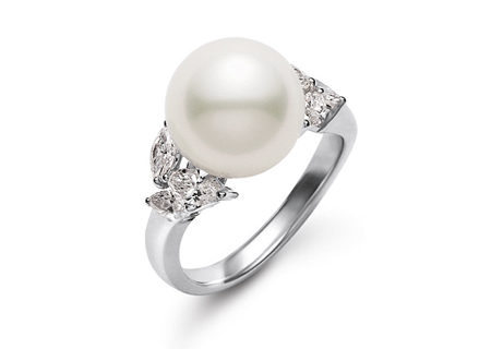 鉑金珍珠鑲鉆婚戒