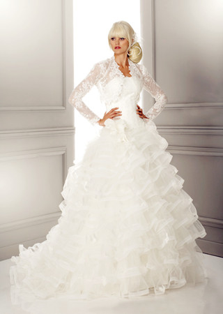 雙肩肩帶式的簡(jiǎn)單婚紗可以增加新娘穿著時(shí)的穩(wěn)固性,讓新娘行動(dòng)自如。肩袖同時(shí)也可以掩蓋一些新娘肩部和臂部的不足,別致的肩袖設(shè)計(jì)可以增加婚紗的趣味。