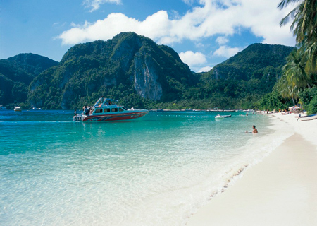 通賽灣美景 寬廣的通賽灣是皮皮島的“交通樞紐”,島上唯一的碼頭就皮皮島在這里。這里也是最繁華的“商業(yè)中心”,小小的巷子中店鋪林立,從旅行社到網(wǎng)吧,從7-11到紀(jì)念品商店,旅游日常所需用品一樣也不少。餐館和旅館更讓這里從早到晚燈紅酒綠,熱鬧非凡。但這里也不缺乏晶瑩閃爍的細(xì)白沙灘、舞影婆娑的熱帶椰林、攝人心魄的碧綠海水。喜歡熱鬧的游客可以在通賽灣找到他們需要的一切,而喜歡清靜的游客就要考慮一下是否應(yīng)該住到一個(gè)更偏僻點(diǎn)的區(qū)域了。從高檔的海景餐廳、到路邊攤、大排檔應(yīng)有盡有。當(dāng)?shù)厝丝谖镀保绻幌怖毙柙邳c(diǎn)餐前特別提出。一般到皮皮島的第一站就是通賽灣,加上這里是皮皮島的唯一碼頭,所以無(wú)需擔(dān)心交通問(wèn)題。 藍(lán)通海灘 藍(lán)通位于大皮皮島北端,和繁華的通賽灣比起來(lái),這里可以用“ 皮皮島人跡罕至”來(lái)形容。除了附近幾個(gè)酒店的住客,很少有人在這里長(zhǎng)時(shí)間逗留,所以這一帶的沙灘特別干凈,而且?guī)缀跏撬饺霜?dú)享。藍(lán)通附近海水純凈,海底世界多彩多姿,適合潛水活動(dòng)。住宿:藍(lán)通附近的幾家酒店口碑都不錯(cuò),唯一的麻煩是交通不便。餐飲:海灘附近只有一家小飯店,但是價(jià)格公道,味道也不錯(cuò)。此外就只有酒店附設(shè)的餐廳,價(jià)格要貴得多了。由于島上沒(méi)有道路,從通賽灣到藍(lán)通必須乘船,包船價(jià)格在600泰銖左右。如果不是住在附近的酒店,最好只是把這里作為環(huán)島游套餐中的一站。 |