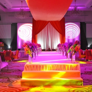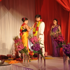 2011年12月11日下午兩點(diǎn),一場別開生面的婚禮秀在北京中環(huán)假日酒店640平米的無柱式宴會大廳內(nèi)拉開了帷幕,翻開了婚禮秀的一個新的篇章。本次的“天竺之旅”異域風(fēng)情婚禮秀以創(chuàng)新的形式和新穎的布置吸引到眾多新人到現(xiàn)場觀摩,給各位求新立異的準(zhǔn)新人帶來了許多新的婚禮靈感。 整個婚禮秀的布置包括桌花,路引和紗幔都引用了印度濃郁的色彩元素,在流光溢彩的燈光下映襯出了鮮明的印度特色。舞臺上用紗幔支起的婚禮帳篷作為整個婚禮秀儀式部分的主體場景。 整個婚禮秀的亮點(diǎn)是印度婚禮傳統(tǒng)儀式的整個過程。新郎身著白色禮服在一名年輕女孩的帶領(lǐng)下入場,隨后全身佩戴黃金首飾和珠寶的新娘也在悠揚(yáng)的傳統(tǒng)印度婚禮音樂中緩緩入場。整個儀式包括祭祀誦讀經(jīng)詩,點(diǎn)朱砂痣,拋灑大米和新人互喂糖果等環(huán)節(jié),每個環(huán)節(jié)都象征了新人們以后長久和幸福的生活。 北京中環(huán)假日酒店的采蝶軒餐廳也作為婚禮秀的另外一個秀場展現(xiàn)了一個溫馨典雅的婚禮現(xiàn)場以滿足新人們對不同風(fēng)格婚禮的要求。 |