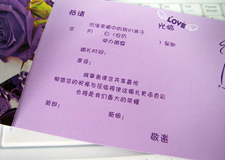 記者在大胡同批發(fā)市場看到,今年的婚禮請柬在用色、鏤空、內(nèi)頁裝飾上呈現(xiàn)多元化的發(fā)展趨勢。一張最便宜的請柬只需3角,而比較“奢華”的請柬則賣到每張5元的高價。雖然新人自己購買請柬更加經(jīng)濟實惠,選擇也更加豐富多樣,但是還是會有很多“怕麻煩”的新人愿意將這項工作托付給婚慶公司。劉裕認為:“請柬是一場婚禮相對與賓客來說的先頭部隊,現(xiàn)在的請柬已然突破以往單純的傳達婚禮基本信息的作用,演變成了婚禮名片,讓來賓對于本場婚禮會有所期待,能夠體會新人的用心良苦,能夠領(lǐng)會本場婚禮的獨特意義。所以,請柬的發(fā)展方向就是定制,將婚禮的主題、新人祝福、現(xiàn)場會出現(xiàn)的細節(jié)等,融匯到一張小小的卡片上! |