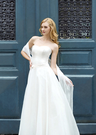 多加一條類似于絲巾的白紗,既能增加婚紗的設計感也能小小保溫一下。