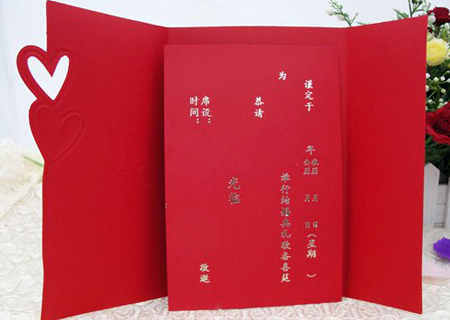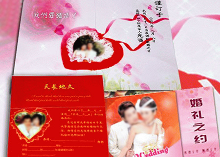 8、請(qǐng)柬的文化 結(jié)婚請(qǐng)柬在中國由來已久,形式有直有橫,顏色多為大紅色。內(nèi)文撰寫的方式到今日依然大至相同,有一套俗成的禮儀用字。較特別的是日期通常會(huì)印上兩種日期,一種是農(nóng)歷日期,一種是公歷日期。此外,有些家庭也會(huì)印上祖父母輩的姓名。 |