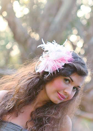 粉紅色羽毛頭飾,帶著可愛與俏皮,是可愛型新娘的首選