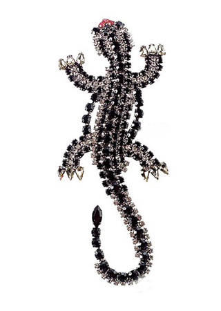 詼諧的蜥蜴形胸針讓人一見難忘,同時(shí)也增加個(gè)人的神秘感,試想,誰曾見過一個(gè)女孩子把一只蜥蜴放在身上呢。