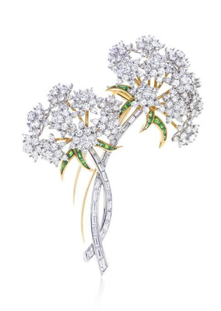 細(xì)密的鉆石鑲嵌方式打造出生動(dòng)仿真花卉造型。這種在工藝上取勝的胸針,特別適合細(xì)膩婉約的女性。