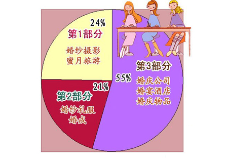 之所以把婚紗攝影和蜜月旅行放在一起,是因為近年來已經(jīng)有越來越多的新人開始熱衷旅游婚紗照,這樣不僅能將蜜月旅途中的風(fēng)景記錄下來,還能將兩者的經(jīng)費和精力合二為一。如果將兩個項目分開進(jìn)行的話,各占比例為下: