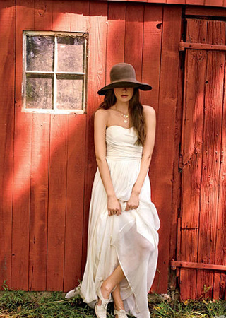 農(nóng)場(chǎng)婚禮,牛仔帽讓新娘更具本土特色。