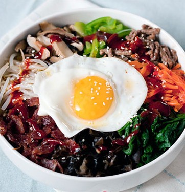 原料: 米飯、牛肉、胡蘿卜、綠豆芽、黑木耳、菠菜、青椒、香菇、臘腸、雞蛋、白芝麻、料酒少許、生粉少許、蠔油適量、香油適量、鹽適量、韓國(guó)辣椒醬。 做法: 1、胡蘿卜去皮切細(xì)絲。木耳泡發(fā)切細(xì)絲。將胡蘿卜、木耳、豆芽、菠菜分別過熱水燙熟,用香油和鹽調(diào)味拌勻; 2、牛肉切細(xì)絲,加料酒、生粉、蠔油和鹽腌制15分鐘; 3、青椒切絲,香菇泡發(fā)去蒂切絲,臘腸切絲。熱油分別炒熟牛肉、青椒、香菇和臘腸; 4、白飯淋上少許香油,拌勻后放在容器底部,在表面均勻碼放準(zhǔn)備好的八道配菜; 5、中火煎一個(gè)單面荷包蛋,放在中間,撒上少許白芝麻; 6、2大勺的韓國(guó)辣椒醬加1大勺的礦泉水、適量的香油,攪拌均勻后淋在飯上。拌勻后即可食用。 PS: 1、配菜可以調(diào)整,泡菜絲、黃瓜絲等都可以。 2、這個(gè)份量是2人份,只多不少。 3、拍照需要,所以配菜都碼放在表面,如果自己吃的話就直接放在一個(gè)大碗里,拌勻就可以了。 |