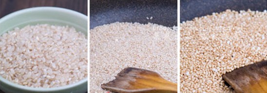 1、糙米放在炒鍋里,小火慢慢地炒,炒到變黃了,關(guān)火,放涼;