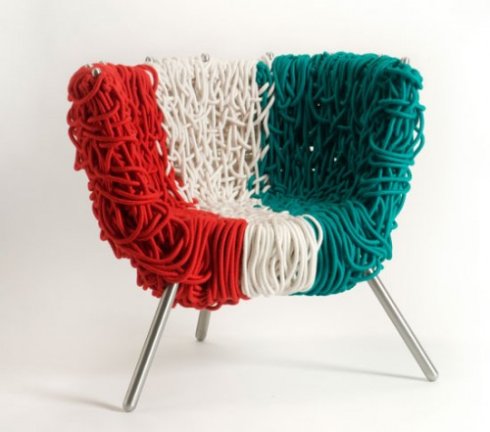 Campana Brothers設(shè)計(jì)的椅子 Campana Brothers設(shè)計(jì)的椅子,取名為italian pride,據(jù)說(shuō),這個(gè)椅子只用4天時(shí)間完成,其中使用了500平方米的丙烯酸和自然棉繩米而成。整個(gè)設(shè)計(jì)看起來(lái)很隨意。~2009年的12月16—18日在米蘭的vermelha現(xiàn)場(chǎng)表演如何制作此椅子。