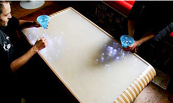 閃閃亮桌子 Neato閃閃亮桌子是Because We Can 和 Evil Mad Science聯(lián)手打造的。用了180個(gè)超亮白光LED和能反饋照明的光學(xué)傳感器組成,當(dāng)桌上放有東西,它接觸的桌面周圍的一些地方的燈就會(huì)閃啊閃啊,擁有非常炫目的美態(tài)。 五角星水龍頭設(shè)計(jì) 這款五角星水龍頭設(shè)計(jì)是由Hany Mansour設(shè)計(jì)的,它全套由一個(gè)水龍頭、一個(gè)水槽、一個(gè)鏡子組成,不過它最特殊的地方還在于它的水龍頭的設(shè)計(jì),共有5個(gè)頭……其中一個(gè)是出水口,一個(gè)出洗手液,一個(gè)出牙膏,剩下的兩個(gè)是干燥器,頂部有一個(gè)觸摸控制設(shè)置,可以打開其中一個(gè)龍頭,調(diào)節(jié)一些設(shè)置如水溫等等……