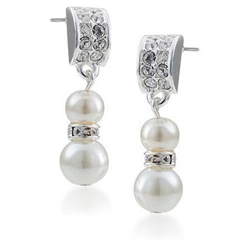 白色珍珠的新娘耳環(huán),兩顆珠圓玉潤(rùn)的珍珠由黑色搭配的鉆飾連接在一起,耳環(huán)的半圓形獨(dú)特設(shè)計(jì)體現(xiàn)了這款新娘耳環(huán)的設(shè)計(jì)感,讓新娘的耳間綻放迷人的光彩。
