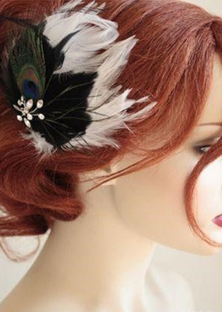 羽毛裝飾:用羽毛裝扮的頭飾是時(shí)下比較流行的一種,不像花朵,如果用不好會(huì)小氣,羽毛看上去就大氣多了。也比較個(gè)性一些。