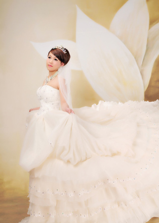 濕洗——婚紗穿過(guò)之后,要盡快洗滌。污漬殘留時(shí)間過(guò)長(zhǎng),會(huì)產(chǎn)生不必要的清洗困難。經(jīng)過(guò)一段時(shí)間,污漬會(huì)老化、褪色,造成婚紗布料的退化和磨損。食品污漬會(huì)引起掉色并且吸引小蟲(chóng)子,飲料中的糖漬干了以后會(huì)變成褐色,很難去除,汗?jié)n會(huì)使婚紗變黃,使布料退化和損傷。 濕洗是關(guān)鍵,因?yàn)榛榧喩系男⊙b飾,比如串珠,亮片,飾邊等,是經(jīng)不起干洗的化學(xué)物質(zhì)的侵蝕,最好的方法是把婚紗放入拌有溫和,中性清潔劑的水中(依據(jù)織物性質(zhì)選擇清潔劑),浸泡一會(huì)兒,這能清洗掉酒席上紅酒,葷油等留下的的污漬,多泡一會(huì)兒,連看不見(jiàn)的污漬如汗?jié)n,白酒漬也能除去;一定不能使用洗衣機(jī)和脫水,否則會(huì)造成裝飾品的脫落。