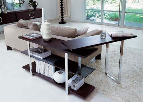沙發(fā)背后邊幾打破條框 如果希望沙發(fā)前的視野開闊,可以直對落地窗俯視街景,浴室省卻了茶幾。那么此時正坐臥得舒服,手里的茶杯、電話等小物件沒地方放,該怎么辦?與沙發(fā)高度協(xié)調(diào)的邊幾能幫你解決這個問題。抑或你覺得沙發(fā)后面的角落有些空,也可以考慮加個邊幾來調(diào)節(jié)。這款邊幾的好處是靈巧組合,搭配隨性。同時,這種聰明的“懶人架”打破了原有中規(guī)中矩的家居擺放格局,可以讓你隨心所欲安置沙發(fā)的位置。 |