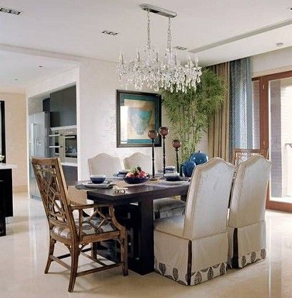混搭的餐廳設(shè)計(jì),穿插著兩種風(fēng)格的餐椅;燭臺和那兩罐子,都給空間增加了看點(diǎn)。