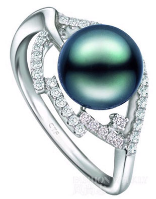 周大!敖^澤”系列黑珍珠戒指,以白色18K金的精彩造型與黑珍珠相配,強調(diào)黑珍珠的神秘感。這款黑珍珠的戒指周邊是鑲鉆的小顆粒鉆石,將新娘的指間襯托的更加優(yōu)雅且華麗。