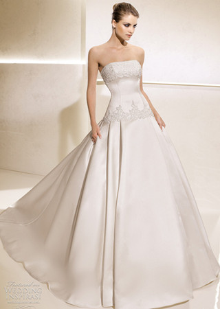 纖長的設(shè)計和光澤的面料襯托了新娘無與倫比的典雅氣質(zhì)。