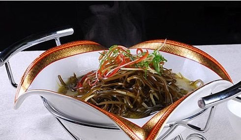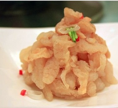 3.涼菜專家:海蜇 減肥效果:★★★★ 100克海蜇絲的脂肪含量也很低,吃一盤海蜇絲相當(dāng)于只吃了一個半蘋果,而且又大大滿足了你的口腹之欲。海蜇富含蛋白質(zhì)、鈣以及多種維生素,尤其含有人們飲食中所缺的碘,是一種高蛋白、低脂肪、低熱量的營養(yǎng)食品。 瘦身小編: 據(jù)《本草綱目》記載,海蜇具有清熱解毒、化痰軟堅、降壓消腫等功能,對支氣管炎、哮喘、高血壓、胃潰瘍等癥均有療效。此外,海蜇有促進(jìn)上皮形成、擴(kuò)張血管、降低血壓、消痰散氣、潤腸消積等功能,同時還能清腸胃,保障身體健康。