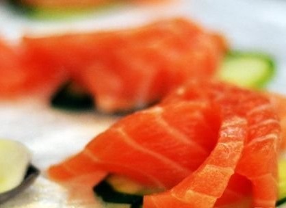 6.減肥圣品:三文魚 減肥效果:★★★ 三文魚中含有人體所健康必須的脂肪酸,人體自身無法合成這種營養(yǎng)素。常吃三文魚可以加強(qiáng)心血管的功能,控制體內(nèi)膽固醇的含量,促進(jìn)消化,加速體內(nèi)脂肪的燃燒,達(dá)到健康減肥的目的。 瘦身小編: 三文魚含有豐富的天然蝦青素,同時,三文魚中還含有豐富的不飽和脂肪酸,能有效提升高密度脂蛋白膽固醇、降低血脂和低密度脂蛋白膽固醇,防治心血管疾病。 所含的Ω-3脂肪酸更是腦部、視網(wǎng)膜及神經(jīng)系統(tǒng)所必不可少的物質(zhì),有增強(qiáng)腦功能、防治老年癡呆,輔助治療和預(yù)防帕金森癥、腦中風(fēng)、視力減退等作用。魚肝油中還富含維生素D等,能促進(jìn)機(jī)體對鈣的吸收利用,有助于生長發(fā)育。