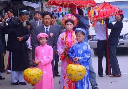 越南貢族的婚俗婚也很特別。他們的婚姻最主要的特點(diǎn)是,先入贅、后娶親。 首先由男方父母、兄弟、族長(zhǎng)和未來的新郎一起到女方去提親,帶上一包鹽、一包茶葉、一捆用來織網(wǎng)的麻繩、一筒酒,晚上到姑娘家。他們一邊抽煙,一邊喝酒,一邊商量?jī)号幕槭。如果女方同意,先商定男子入贅女方的年?以前上門是8至12年,現(xiàn)在大致縮短為3至4年。