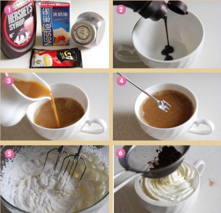 巧克力醬、淡奶油、咖啡一袋、白砂糖適量、可可粉適量。