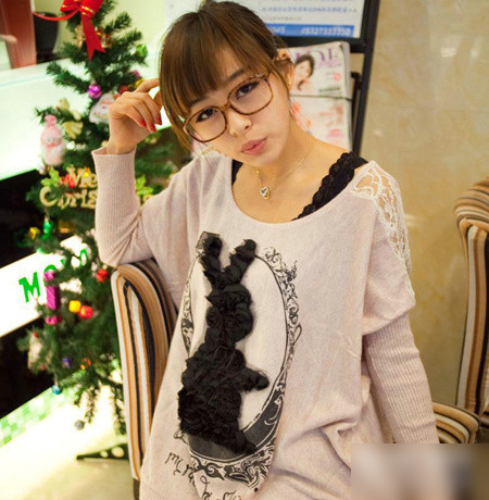 玫瑰 花兔子蕾絲寬松 針織衫 ,這次新品中最喜歡的一個款,吼吼貌似最近緊身的針織衫有點OUT啦,都是這種肥肥大大的款式,袖子是非常大的蝙蝠袖 ,袖口部位是收緊的設(shè)計 會顯得小臂很細(xì)哦,顏色是我最愛的粉色和大紅色 秋天穿起來無敵清爽, 衣服 上的立體蕾絲兔子也是設(shè)計的亮點 ,雖然是純色 但是因為有了這個蕾絲兔子,YY就很有立體感和層次感了,不挑身材的款 休閑又有女人味。