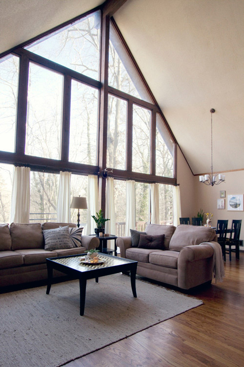 大自然的陽光這么美好,用墻壁將他們擋起來實在是太浪費了,深咖啡色的窗框搭配白色的窗簾,給人以舒適安逸的感覺,享受陽光的同時,還能清晰欣賞窗外的美景,天氣好的時候還能打開窗戶,讓舒適的自然風吹進室內(nèi)。