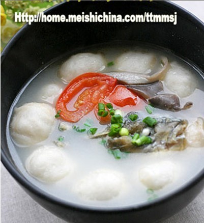 原料: 三斤左右草魚一條、蛋白3個、化豬油150克、鹽、雞精、白胡椒粉、生姜、小蔥、料酒、清水各適量。 做法: 1、草魚洗凈剖殺,取魚肉和魚頭(魚盔和魚骨這道菜里不用,可腌制后做熏魚),將魚肉切成小塊備用; 2、蛋清與蛋黃分開; 3、小蔥取蔥白,生姜切小塊; 4、將魚肉、蛋白、生姜、蔥白放入料理機(jī)中; 5、蓋上蓋子倒置按下攪拌,上面的魚肉如果攪不勻,中間可取出搖晃幾下再攪,以保證每一塊魚肉都能攪碎; 6、攪打成均勻的魚肉泥,魚肉的份量比較多的話,分三到四次攪拌為宜; 7、將攪好的魚肉倒入一大盆中備用; 8、加入生粉,化豬油,適量鹽、雞精、白胡椒粉,水和料酒; 9、用電動打蛋器攪打上勁(請忽略我照片中那個打面團(tuán)的頭,事實(shí)證明打魚泥還是用打蛋的頭才能打得上勁,可后來換頭的照片我忘記拍了) 10、煎鍋中倒入適量的油,大火燒至八成熱,改中火,下入魚頭兩面稍煎,不用煎很久,只要煎至剛起皮就行; 11、將魚頭置于大湯煲中,下入姜片,注入大半鍋清水,大火煮沸; 12、煮沸的過程中,將番茄和蘑菇洗凈,番茄切塊,蘑菇撕成小條; 13、水開后下入番茄和蘑菇; 14、將攪打好的魚泥用虎口擠出丸子,下入湯中; 15、大火再次煮沸后,轉(zhuǎn)小火,加入適量鹽,蓋上蓋燜煮20-25分鐘,起鍋時加入雞精、胡椒粉調(diào)味。 魚丸湯鮮美濃醇的秘笈: 1、加入魚頭一起煮,才能出一鍋色如牛奶的濃湯; 2、魚頭一定要先用煎過,這樣煮出來的湯才不會腥、浮末少、湯色才會呈奶白; 3、鹽不能下得過早,鹽下早了魚肉會老,湯味不甜; 4、魚肉中加入適量的豬油,魚丸的口感會更嫩,一般豬油與魚肉的比例為1:5; 5、生粉與魚肉比例為1:10; 6、魚肉中加入的水分成份(蛋清、料酒、清水等)不要超過魚肉總量的1/5; 7、打魚泥時,用電動打蛋器(當(dāng)然有廚師機(jī)更好)的低速,打到感覺打不動了的時候,可加少量水再打,所以魚肉中水的成份不要一次加完; 8、魚泥打到什么程度才叫打好了呢?很簡單,感覺打蛋頭打得很吃力,有些打不動了的時候,準(zhǔn)備一盆冷水,擠一個丸子,試著放入水中,如果丸子漂起來了,就打好了,如果直接沉下去了或者散了,那就還要繼續(xù)攪打,魚泥要攪打上勁,口感才會Q彈,所以這是個功夫活,急不得,慢慢打,得有耐心; 9、魚湯中加入番茄和蘑菇,可以去腥增鮮,豐富魚湯的口感; 10、如果怕魚湯帶腥,可在起鍋時加少量料酒或白醋,魚湯的腥味會去掉很多。 說了這么多,大家都知道如何熬出一鍋至濃至醇的鮮美魚丸湯了,趕快來試試吧!這可是正宗漁家菜不外傳的秘笈哦! |