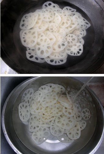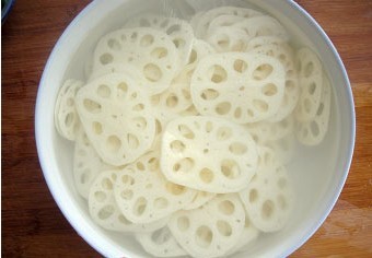 蓮藕營養(yǎng): 清熱涼血、 通便止瀉、健脾開胃益血生肌、止血散瘀。蓮藕散發(fā)出一種獨特清香,還含有鞣質(zhì),有一定健脾止瀉作用,能增進食欲,促進消化,開胃健中,有益于胃納不佳,食欲不振者恢復(fù)健康。 生藕味甘、性寒,入心、脾、胃經(jīng);具有清熱、生津、涼血、散瘀、補脾、開胃、止瀉的功效;主治熱病煩渴、吐血、衄血、熱淋。熟藕性溫、味甘;具有益胃健脾、養(yǎng)血補益、生肌、止瀉功的功效。 原料: 鮮藕、小蔥、干紅椒、精鹽、花椒、生姜、白醋。 做法: 1、藕削皮切薄片約1mm厚(越薄越好),放入滴有白醋涼水中浸泡。 2、藕片入開水鍋焯水后放涼水中沖洗,浸泡。 3、紅辣椒切圈、蒜瓣拍扁切碎、小蔥切蔥花。 4、撈出藕片碼在盤內(nèi)用精鹽、白醋調(diào)勻。 5、灑入蒜末、紅辣椒圈、蔥末。 6、另起鍋倒入植物油花椒,油熱后蓖出花椒,把熱油潑在藕片上,“吱啦... ...”