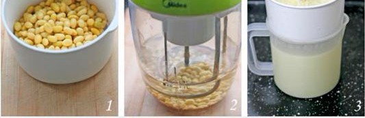 1、將黃豆浸泡一夜至完全漲發(fā),濾干水分備用;