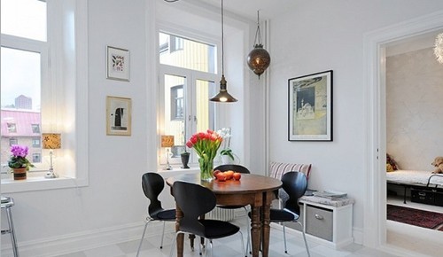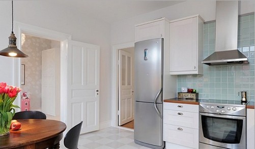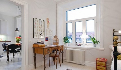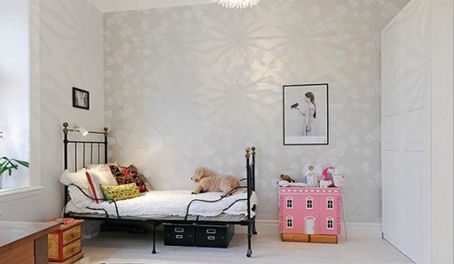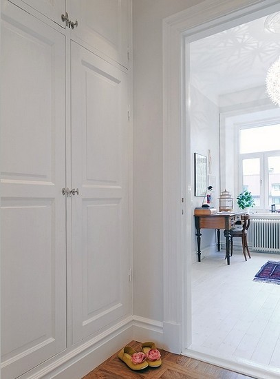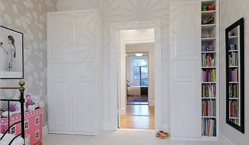 這是一個93平米的兩室一廳的公寓,有著充足的自然陽光從玻璃窗照射進(jìn)屋子內(nèi),似乎看上去沒有太多的儲物空間,房間內(nèi)也使用了一些暗花白色的墻紙,使得空間的色調(diào)統(tǒng)一,卻又有著質(zhì)感的裝飾,非常中規(guī)中矩的房間格局,沒有太多許多特別設(shè)計(jì)的部分。但很多細(xì)節(jié)都有著精致的裝飾,如門把手,鐵藝床等等。