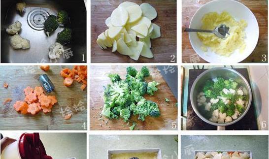 蔬菜是人們?nèi)粘o嬍持斜夭豢缮俚氖澄镏弧J卟丝商峁┤梭w所必需的多種維生素和礦物質(zhì)。據(jù)國際糧農(nóng)組織1990年統(tǒng)計(jì),人體必需的維生素C的90%、維生素A的60%來自蔬菜。此外,蔬菜中還有多種多樣的植物化學(xué)物質(zhì),是人們公認(rèn)的對健康有效的成分,如:類胡蘿卜素、二丙烯化合物、甲基硫化合物等。目前果蔬中的營養(yǎng)素可以有效預(yù)防慢性、退行性疾病的多種物質(zhì)正在被人們研究發(fā)現(xiàn)。 但是大多數(shù)的孩子并不是特別喜歡吃蔬菜,象我家倆寶貝就是這樣,幼兒園的老師說,他們吃飯的時候,會把碗里的青菜撥開,把肉和飯吃了,就剩下青菜在碗里。 所以,平時我得嘗試把蔬菜菜做成各種樣式的,以迎合他們的胃口。 薯泥芝士焗菜花 柔滑的土豆泥+奶香味十足的芝士,讓孩子的味蕾全面綻放! 原料: 西蘭花50克、花菜50克、土豆1個、胡蘿卜1根、芝士片2片、鹽1小匙、玉米油少許。 做法: 1、將西蘭花和菜花先用清水沖洗后再放清水里浸泡15分鐘。 2、土豆去皮,切成薄片,放微波爐內(nèi)高火叮熟。 3、趁熱將土豆用勺子壓成泥,加入1小匙鹽拌勻。 4、胡蘿卜去皮切成片,用蔬菜模壓出小花。 5、浸泡好菜花和西蘭花切成小塊。 6、把菜花、西蘭花、胡蘿卜花一起放沸水內(nèi)煮3分鐘左右,撈出瀝干水份。 7、倒少許玉米油在烤盤上,抹勻。 8、鋪上土豆泥。 9、放上菜花、西蘭花、胡蘿卜花,再把芝士片撕成小塊,撒在蔬菜上面,入預(yù)熱至160烤箱,烤約20分鐘左右,蔬菜表面金黃即可。 TIPS: 1、出爐后,用筷子將土豆泥和蔬菜稍拌一下,土豆泥裹著蔬菜,味道更好。 2、也可以換成其它的蔬菜來制作。 3、因?yàn)槭墙o小朋友吃的,蔬菜盡量切得小塊些,可以借助蔬菜模具來做出可愛的造型吸引他們。 這次,我用芝士片和土豆、蔬菜一起焗,沒想到我家倆寶搶著吃,兩人都要把裝菜的盤端到自已面前,呀!平時的謙讓精神都跑哪去了?一下就把整盤菜給吃光了! 我說一下他們的吃這盤菜的順序:先是挑著胡蘿卜花吃了、再吃土豆泥、再把裹著土豆泥的菜花和西蘭花給吃了,真是讓我開心得不得了呀! 孩子不愛吃蔬菜,有的是因?yàn)椴幌矚g某種蔬菜的特殊味道;有的是由于蔬菜中含有較多的粗纖維,兒童的咀嚼能力差,不容易嚼爛,難以下咽;還有的是由于有挑食的習(xí)慣。 父母要采用一些巧妙的方法,逐步幫助孩子愛上吃蔬菜: 1、把蔬菜“藏”起來:很多孩子愛吃帶餡兒食品,因此,父母們可以經(jīng)常在肉丸、餃子、包子、餡餅里添加少量孩子平時不喜歡吃的蔬菜,久而久之,孩子就會習(xí)慣并接受各種蔬菜的味道。 2、偶像效應(yīng):調(diào)動孩子吃蔬菜的積極性最好的方法就是講故事,可以講他們喜歡的動物也喜歡吃哪種蔬菜,以吸引他們也喜歡吃蔬菜。 3、做菜時要講究烹調(diào)技術(shù)和方法,要適合兒童的年齡特點(diǎn)。由于孩子年齡小,咀嚼能力差,做菜時應(yīng)把菜切得碎些,燉得爛些。注意蔬菜色彩的搭配,平時經(jīng)常變換花樣,引起孩子的食欲。 4、如果孩子實(shí)在不愿吃某一種蔬菜,不要強(qiáng)迫他吃,避免孩子邊吃邊哭,以后對那種蔬菜就更反感了。 |
