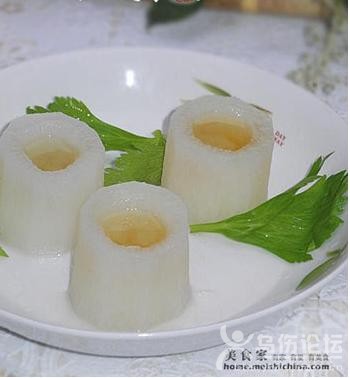 白蘿卜有很好的止咳化痰,生津止渴的功效,加上養(yǎng)陰生津,潤(rùn)肺止咳的冰糖和蜂蜜,能很好的治療秋燥引起的咳嗽,口干舌燥。冰糖蘿卜,是民間傳統(tǒng)的潤(rùn)肺止渴食療小方法。 冰糖蘿卜 原料: 白蘿卜1根、冰糖15克、蜂蜜10ml。 做法: 1、白蘿卜去皮,切成圓柱形。 2、每一個(gè)蘿卜中間挖一個(gè)圓形的洞。