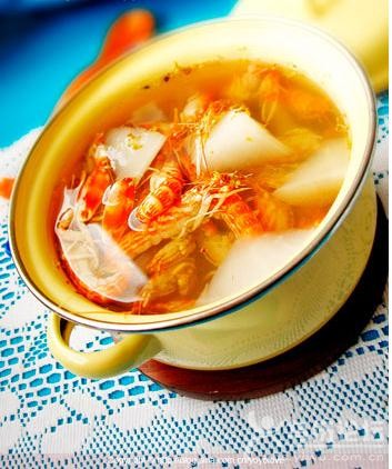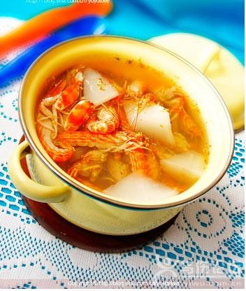 桂花蘿卜蝦湯,是一道口味甜美暖胃散淤的應(yīng)季好湯。桂花能溫補陽氣,有化痰、止咳、生津的功效。白蘿卜可幫助消化,促進新陳代謝,所含的淀粉酶,能夠阻止淀粉過多、消除胃炎及胃潰瘍。嘎嘣蝦含有微量元素硒,能預(yù)防腫瘤疾病。桂花蘿卜蝦湯,既有清雅的桂花香,又有嘎嘣蝦的鮮美,具有溫中散寒、暖胃止痛、化痰散淤的功效。 原料: 桂花干5克、白蘿卜300克、小蝦300克、姜一塊、高湯一杯、清水1000克,鹽3克、胡椒粉2克。(2人份) 做法: 1、白蘿卜洗凈切塊備用。小蝦洗凈備用。 2、白蘿卜、姜、高湯、清水,入湯煲煮沸。 3、15分鐘后,加入小蝦煮沸。 4、加入桂花煮10分鐘,最后加入鹽、胡椒粉調(diào)味。 早春,煲一道健康美味的桂花蘿卜蝦湯。 |