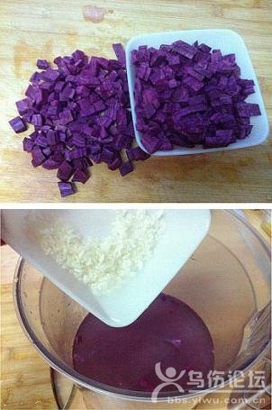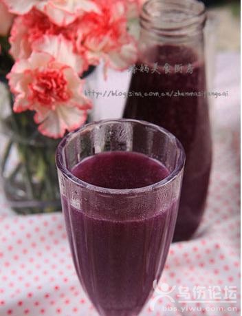 紫薯,是薯肉呈紫色至深紫色的番薯類,除了具有普通紅薯的營養(yǎng)價(jià)值外,還富含硒元素和花青素,具有非常好的保健功能,纖維素含量也高,是很理想的健康食材。 單就紫薯的口感來說,比較扎實(shí),不像普通紅薯那般甜嫩多汁,紫薯因?yàn)槔w維比較豐富,所以口感有點(diǎn)粗。有時(shí)候我會(huì)切成粒在米飯快成熟時(shí)放入做成紫薯飯,或者就是水里煮煮熟,但其實(shí)還有個(gè)更好的吃法,就是把它榨成汁,做成營養(yǎng)美味的紫薯汁,一舉兩得,而且還非常方便。 做紫薯汁有個(gè)小竅門,就是加一把米,會(huì)讓紫薯的口感變得香濃又美味~! 原料: 小紫薯3個(gè)、大米1小把。(攥在手心里一點(diǎn)點(diǎn)即可) 調(diào)料:糖。 做法: 1、紫薯去皮洗凈切成小。淮竺子脽崴10分鐘備用;將大米與紫薯丁一起放入豆?jié){機(jī)中; 2、加入紫薯2倍左右的水,按豆?jié){機(jī)的玉米汁功能,豆?jié){機(jī)便會(huì)自動(dòng)打磨煮熟,完成后加入適量糖調(diào)味即可。 美食心得: 1、最重要的是加入一把大米,會(huì)使口感變的香濃; 2、如果家中豆?jié){機(jī)沒有玉米汁功能,也可以用攪拌機(jī)代替,具體步驟如下: 3、紫薯切丁和水一起煮熟放至溫?zé)幔?/P> 5、加入一湯匙米飯,放入攪拌機(jī)中攪打成汁,調(diào)入白糖即可。