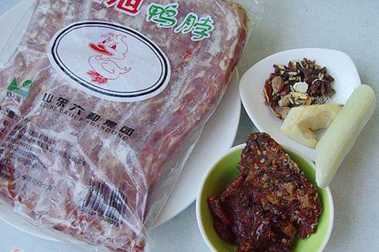 5、再下入老鹵味料; 6、將焯水的鴨脖下入鍋內(nèi)大火煮沸,轉(zhuǎn)中火蓋鍋蓋燜制30分鐘; 7、待湯汁減至一般時轉(zhuǎn)大火收湯汁即可; 8、將鹵制的鴨脖放涼即可食用。
