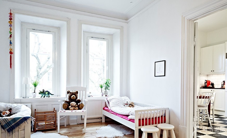 這是一套在瑞典的1885年新文藝復(fù)興時(shí)期的公寓,白色的室內(nèi)基調(diào)與地面形成對(duì)比,兩室一廳的空間能適應(yīng)父母和兩個(gè)孩子。不同風(fēng)格的家具散落在每個(gè)空間里,如現(xiàn)代時(shí)尚風(fēng)的臥室,經(jīng)典北歐風(fēng)的兒童房,或是黑白風(fēng)的廚房,還是歐式古典味的客廳等,十足的簡(jiǎn)約混搭風(fēng)格,如果你喜歡這樣的北歐式的混搭設(shè)計(jì),可以參考下咯!