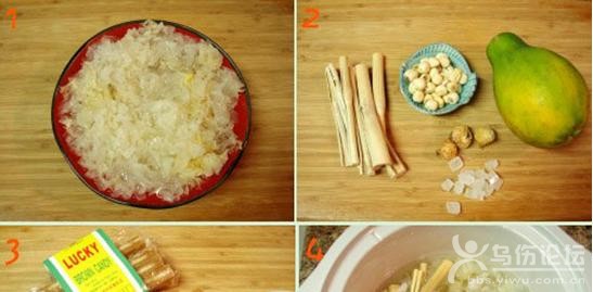 女性絕美滋補(bǔ)佳肴-甘蔗片糖燉銀耳 最近又恢復(fù)了好吃的好習(xí)慣,每天中午自己吃的那一餐,也盡量做的豐富一點(diǎn),原因是,俺做了一個(gè)夢,老天爺拿根皮鞭說,老牛你得好好的吃、好好的睡,不然老爺我臉色很難看。 原料: 銀耳、干甘蔗、蓮子、干無花果、木瓜、冰糖。 做法: 1、銀耳洗凈加入足量的清水泡發(fā); 2、干甘蔗、蓮子、干無花果、木瓜、冰糖; 3、廣式黃方片糖; 4、將所有材料除木瓜外,一并放入慢燉鍋,加入適量的水燉至銀耳軟爛適中,起鍋前加入木瓜塊一起食用即可。 小牛貼心提示: 1、銀耳加水浸泡以后會(huì)變很多,故請(qǐng)根據(jù)食量泡發(fā); 2、有新鮮的甘蔗最好,沒有可用干甘蔗代替,干貨店有售; 3、方片糖本身營養(yǎng)價(jià)值比冰糖要高,請(qǐng)根據(jù)實(shí)際情況選用; 4、各家慢燉鍋功率不盡相同,一般以銀耳軟爛適中為佳。 |