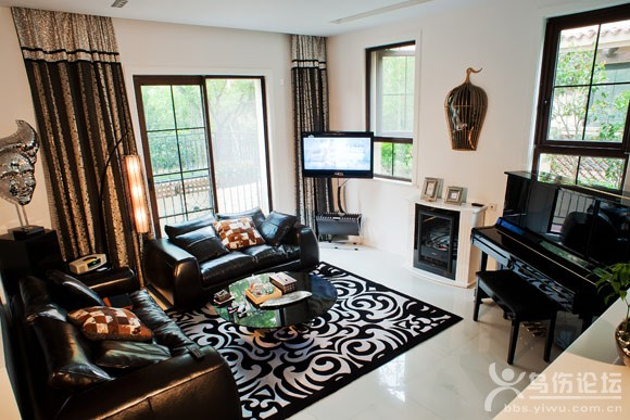 這個(gè)家中的軟裝極具特色,色澤華麗的軟裝布藝、別具特色的各式工藝裝飾品,以及獨(dú)特雅致的時(shí)尚家具等,都在悄然襯托著這個(gè)精致愜意的家。在這里,你可以充分享受精致時(shí)尚的家裝氛圍,同時(shí)又可細(xì)細(xì)品味那份家所帶來(lái)的愜意與從容。 常住人口:三口之家 建筑面積:98㎡ 軟裝費(fèi)用:10萬(wàn) 裝修風(fēng)格:現(xiàn)代簡(jiǎn)約 一、客廳 黑色的真皮沙發(fā)與黑色的落地烤漆鋼琴相映成趣,與白色的墻面和淺色的地磚形成鮮明對(duì)比,花色裝飾地毯打破了黑白兩色的嚴(yán)肅感,給空間增添了更多的時(shí)尚感與活潑情趣。 用不同的材質(zhì)打造出不同空間的魅力,讓每個(gè)空間都有自己的個(gè)性。有時(shí)候,只需是墻面或者是地面的小小改變,就能讓整個(gè)空間風(fēng)格獨(dú)特起來(lái)。 |