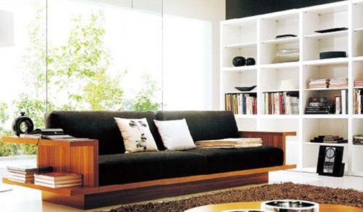 休閑區(qū)的紙質(zhì)讀物收納,利用帶雙層擱板的長條沙發(fā) 休閑區(qū)的紙質(zhì)讀物收納,利用帶雙層擱板的長條沙發(fā) 倚在沙發(fā)上看書,是一件十分愜意的事情,將常閱讀的書籍收納在帶雙層擱板的沙發(fā)上,不用起身也可以取換書籍。沙發(fā)的整個背部都可以分層收納和展示物品,席地坐在圓形木紋的茶幾旁邊,隨手就可以從沙發(fā)上取書來讀。
