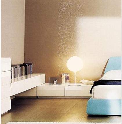 各類睡前讀物的收納,利用床頭的白色連體床頭柜 各類睡前讀物的收納,利用床頭的白色連體床頭柜 對睡覺前有看書習(xí)慣的人來說,臥室的書籍收納十分重要。擺放得體的書籍,同時還可以作為房間的裝飾品,增加美感。在白色的連體床頭柜上面放置整排深色的書籍,有效中和了低矮的白色床頭柜和淺藍(lán)色床體帶來的輕盈感。