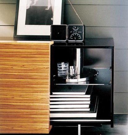 靈活地擺放和收納書籍,利用帶滑動門的雙層內(nèi)格邊柜