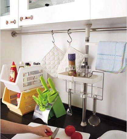 頂天立地多功能流理臺(tái)伸縮置物架 HOLA特力屋達(dá)人推薦——頂天立地多功能流理臺(tái)伸縮置物架 充份利用廚房流理臺(tái)空間,集層架、掛勾多種收納功能,安裝時(shí)可上下頂住,穩(wěn)固不易搖晃 置物架可隨意調(diào)整所需高度,吸盤式設(shè)計(jì),不必?fù)?dān)心鉆孔影響裝修效果。