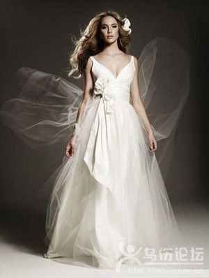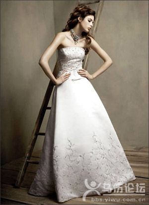 3.婚紗上的飾物以精巧簡潔為宜,切勿過于夸張,破壞整體的窈窕感覺。