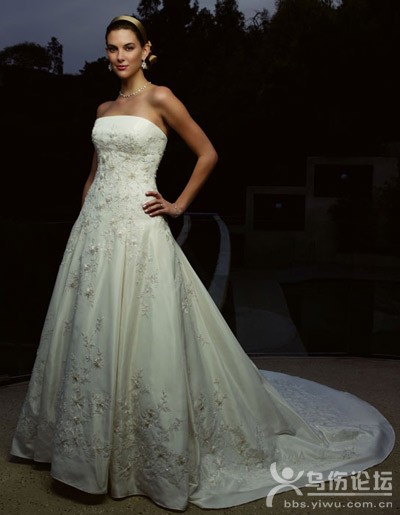 2、裙擺的設(shè)計(jì)上一定要是A字型的婚紗,裙擺越簡單越好,切忌不要盲目追隨潮流,前面不能是蛋糕式的層疊婚紗或是蕾絲裝飾過多的婚紗。
