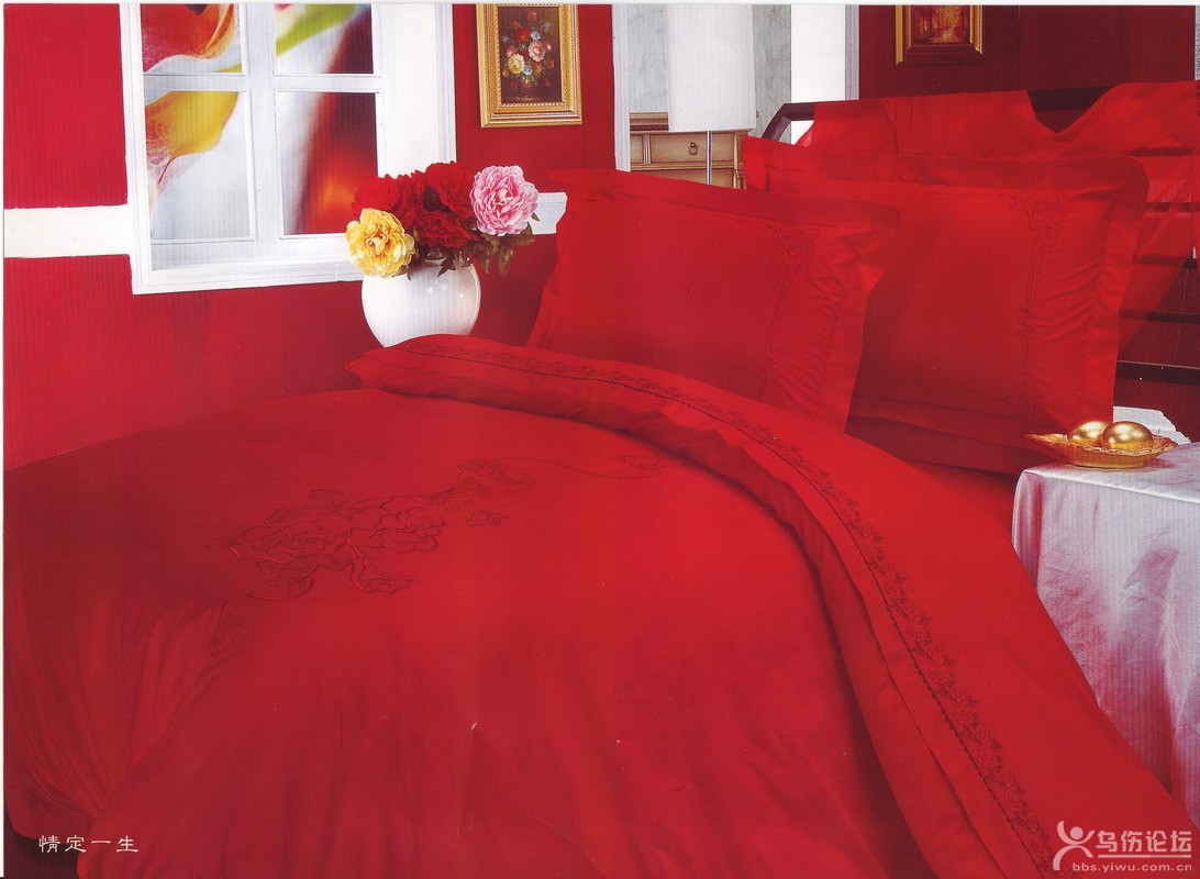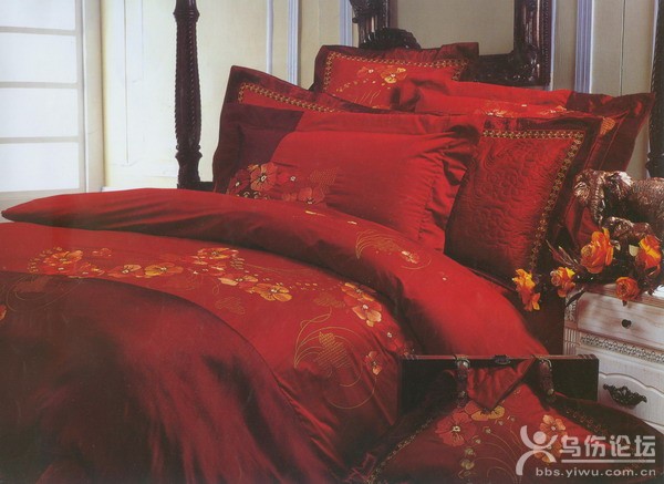 紅色代表熱情,象征著濃烈的愛情,上海斐唯德的喜結(jié)良緣婚慶系列,正是運用了貢緞提花與濃烈愛情結(jié)合的手法,在印染刺繡中將婚床的魅力發(fā)揮到極至。