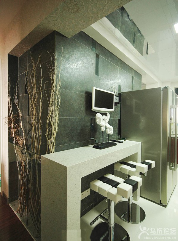 室內(nèi)的吧臺(tái)位置的墻壁都是砌的壁磚,非常有質(zhì)感,當(dāng)然色調(diào)也略冷